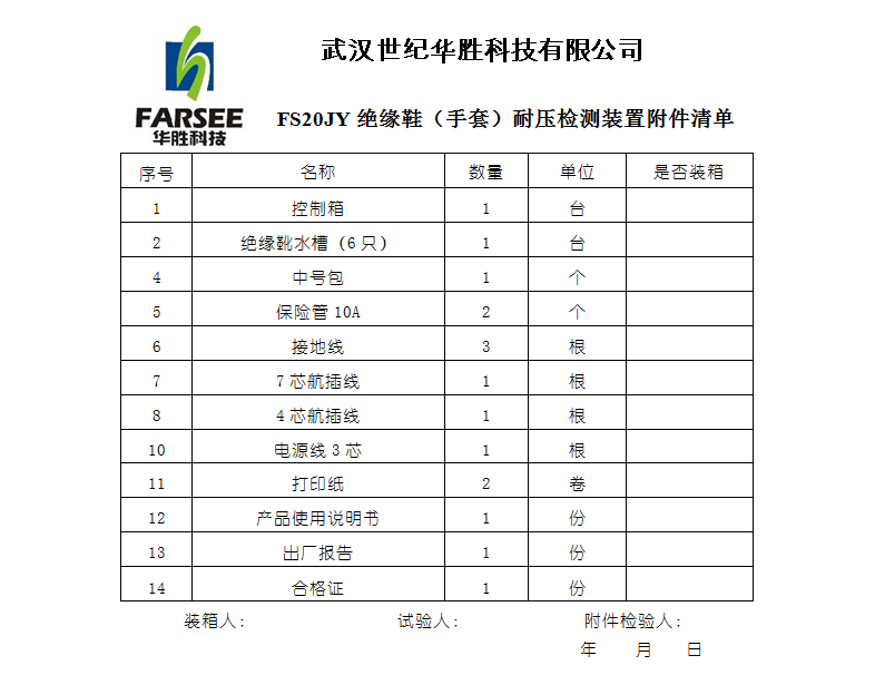 ◆ FS20JY絕緣鞋(手套)耐壓裝置技術參數