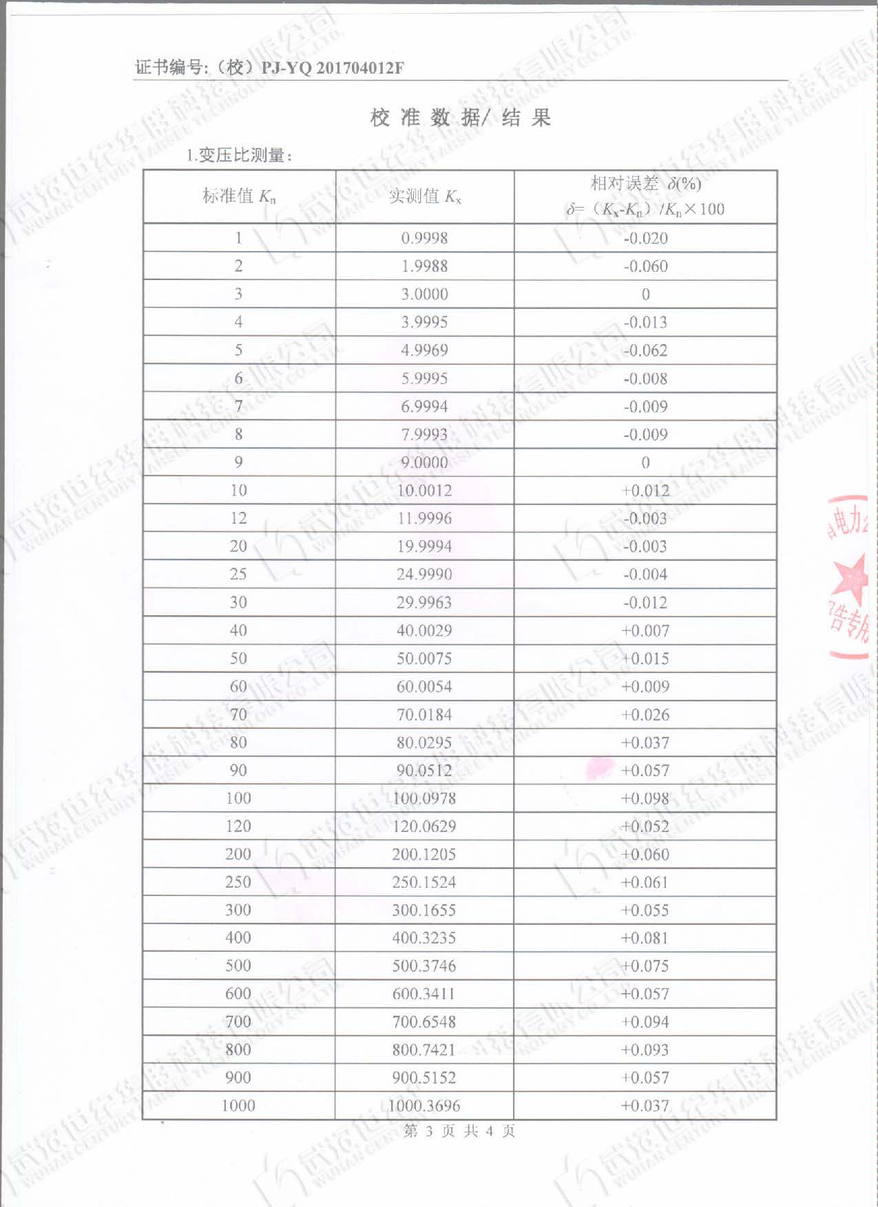 低壓側(cè)電壓的測(cè)量精度:0.1%